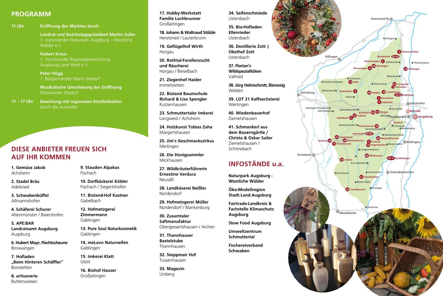 Wir bedanken uns recht herzlich beim Markt Diedorf sowie dem Landratsamt Augsburg für die Einladung, das entgegengebrachte Vertrauen und die gute Zusammenarbeit bei der Vorbereitung und Durchführung des Regionalmarktes.